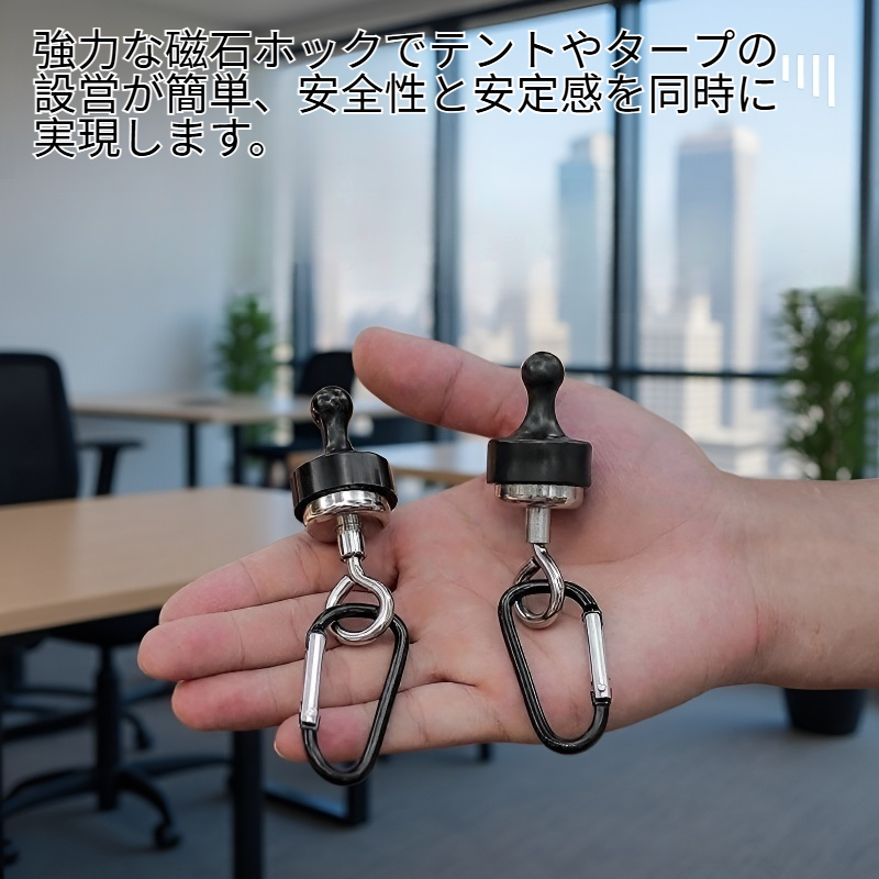 ● 強力な磁石ホックでテントやタープの設営が簡単、安全性と安定感を同時に実現します。